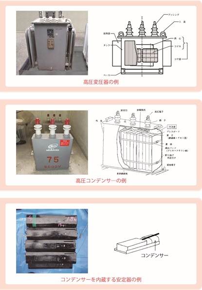 【高濃度PCB廃棄物(PCBが使用された代表的な電気機器等)】